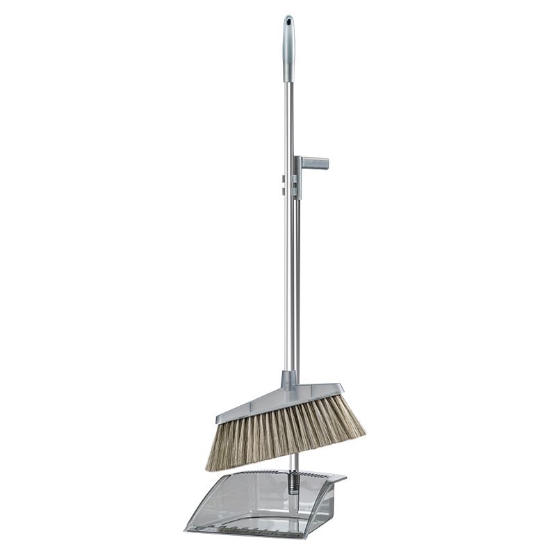 A premium broom and dustpan set made with thick, clear materials, offering a clean look and durable performance for everyday household cleaning.