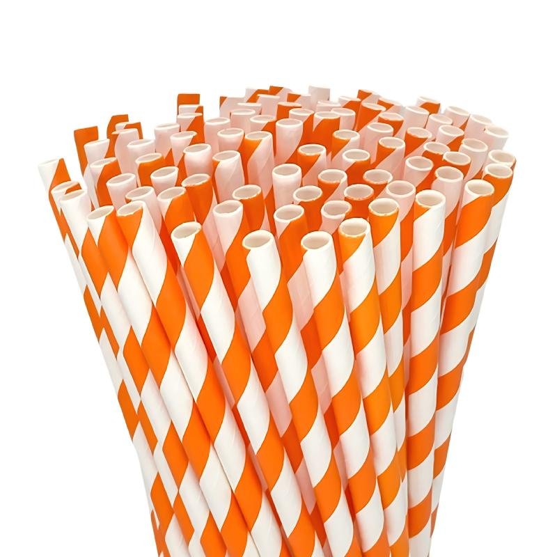 These disposable plastic straws feature a bright orange-white striped pattern, adding a fun and lively touch to any beverage. Made from food-grade material, they are safe, sturdy, and suitable for a wide range of drinks such as juice, soda, and milk tea. The smooth surface and firm construction ensure comfortable and reliable use without collapsing during drinking. Ideal for cafés, drink shops, restaurants, dessert tables, parties, and home use, they offer a practical and visually appealing option for disposable drinkware.