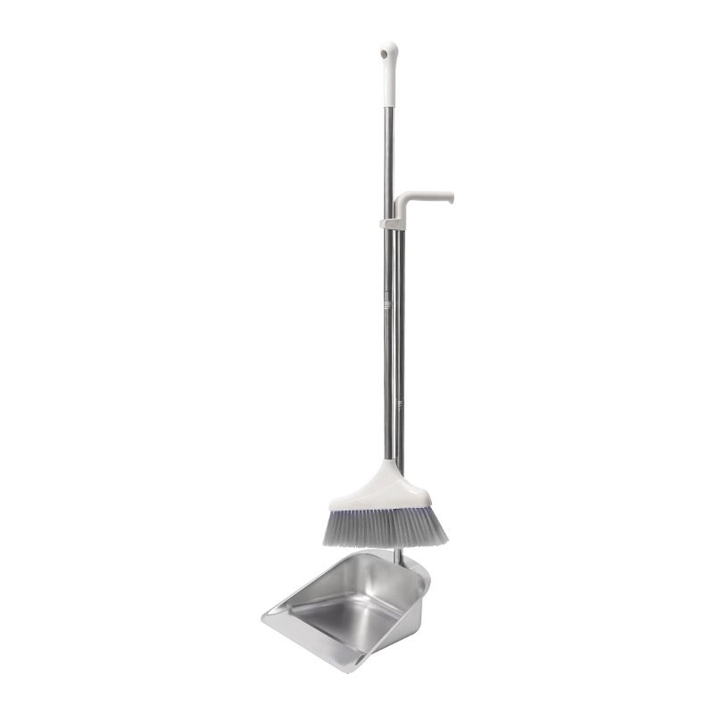 This stainless steel broom and dustpan set features a sturdy stainless steel handle that offers excellent durability and resistance to bending. The dustpan is molded as a single piece, allowing it to sit flush against the floor and efficiently collect dust, debris, and everyday waste.