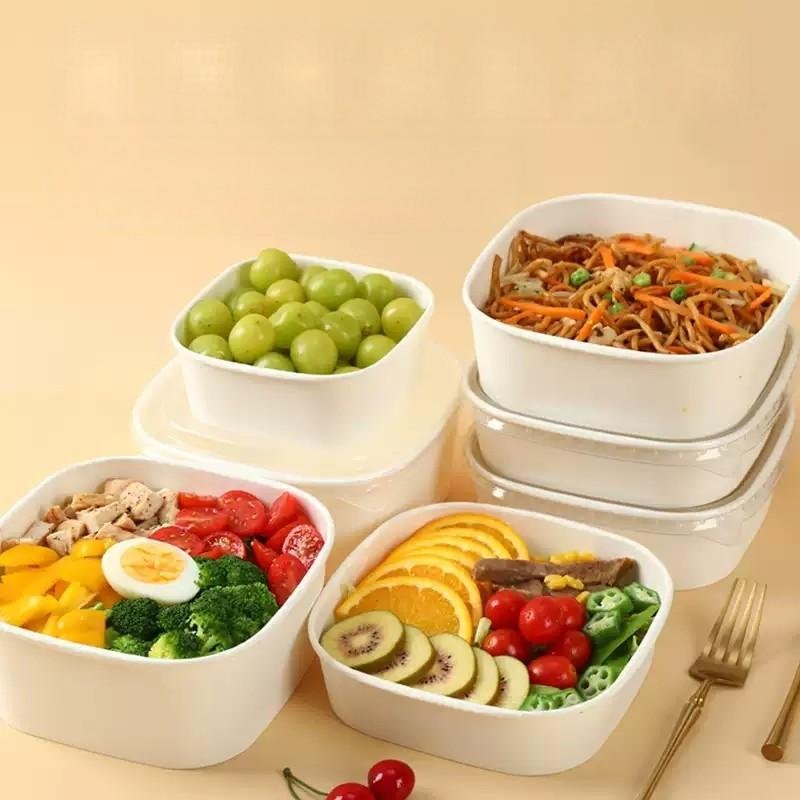 White Square Kraft Paper Containers – Disposable Fruit, Salad & Takeout Boxes