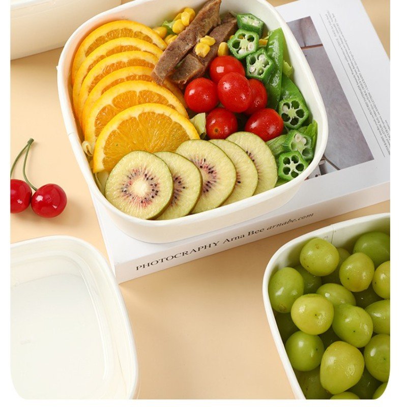 These white square kraft paper containers are crafted from food-grade, eco-friendly material with a clean and minimalist appearance. Ideal for fruits, cut fruit, salads, light meals, desserts, and takeout service, they offer strong structural integrity with excellent resistance to moisture and grease. The square shape allows for efficient stacking and space-saving storage, making them practical for restaurants, cafés, salad bars, and delivery operations. Fully recyclable and biodegradable, they provide a modern and sustainable packaging option suitable for both commercial food service and everyday home use.